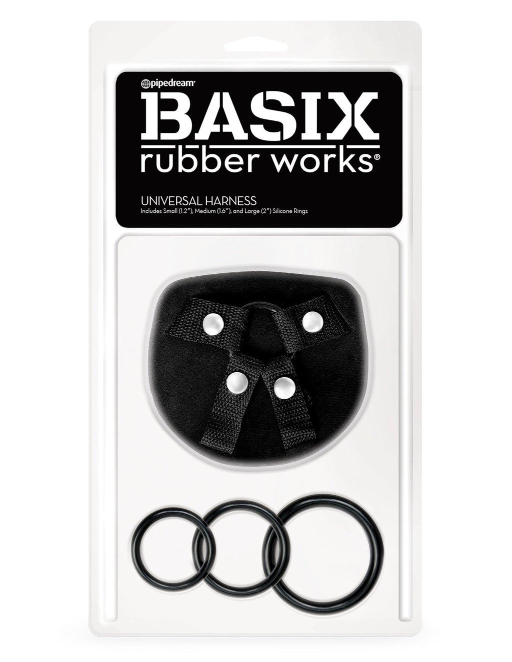 The BASIX Universal Harness is available in Regular and Plus-Size and includes 3 silicone rings. Easy to adjust and fun to use for sexy strap-on play. Most of our BASIX dildos are Strap-On ready and Harness Compatible.