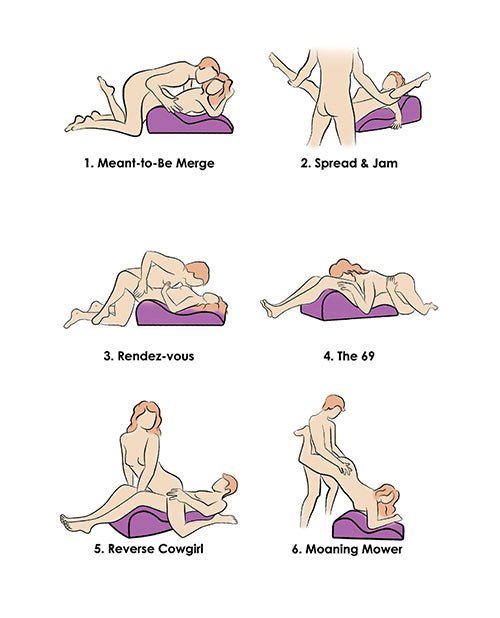 You place the pillow on the center of the bed. As you climb up onto it you slide back so your head rests on the higher level, your hips supported at the lower curve. Your partner mounts you and for the first time you don't sink down into pillows and the angle they crave is one they can keep. You change positions to Doggy style, your hips braced by the higher curve of the pillow and your elbows and forearms leaning on the lower arch. They kiss you up your legs and between your thighs before giving you a little playful slap on your behind then slide themselves inside you. The firm pillow keeps its shape as you feel them pushing into you from behind. You flip over so your belly faces the sky and your hips are up in the air. Your body drapes downwards, hips at the perfect height for them to caress, lick and please you. With so many ways to enjoy each other, the night lasts longer, and you find countless new ways to redefine what pleasure and sex mean to you both...Available at FunLove.com, the largest adult toy selection at the lowest prices, with discreet shipping and billing.