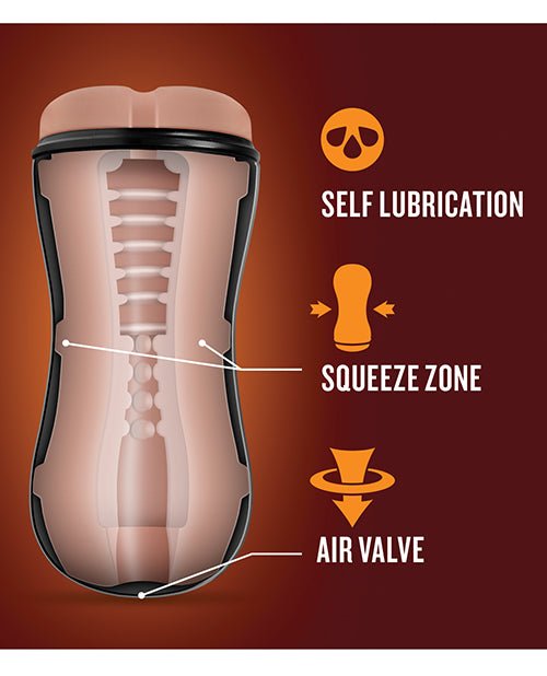 Cowboy is loaded with fun! This pocket stroker is self lubricating, just add a little water or saliva and everything gets slippery. Squeeze the cup and open or close the PerfectFlo Air Valve Control for more suction and pleasure. The Coverboy masturbators are soft, flexible, and filled with sensational textures that will drive you over the edge! The Cowboy contains no Phthalates, Paraffins, or Latex and is so realistic... It feels like the real thing. Self-lubricating properties are temporary. It will last up to 12 uses. To clean, wash with soap and water. Pat dry and allow to air dry before storing. Use products only with water based lubricants. It is recommended to start using water-based lubricants after self-lubricating properties begin to diminish.