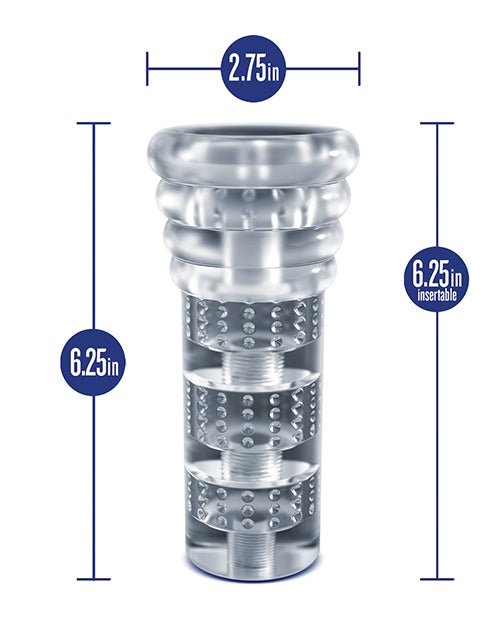 The RIZE! Luz is loaded with fun! This stroker is self-lubricating, just add a little water or saliva, and everything gets slippery. It also glows blue in the dark to add some excitement to your night! The Luz has soft ticklers for the ultimate feel and a ribbed inside for pressure point massage. Multiple chambers of suction create pleasurable stroking sensations. Super-soft and flexible, the Luz will fit any size shaft. It is free of phthalates, fragrances, paraffins, and latex.