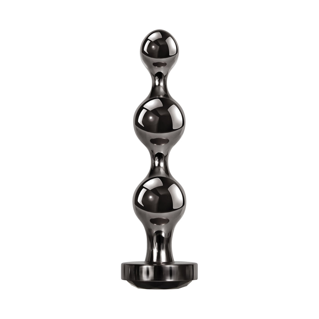 Discover the sleek and stylish Intrigue Booty Call Anal Plug - Large! Its body-safe aluminum alloy nonporous shaft showcases a bulbous design with incremental shapely bulbs and a sparkling black gem at the base. Spice up your play time and explore sensational pleasure by warming or cooling your plug with water.