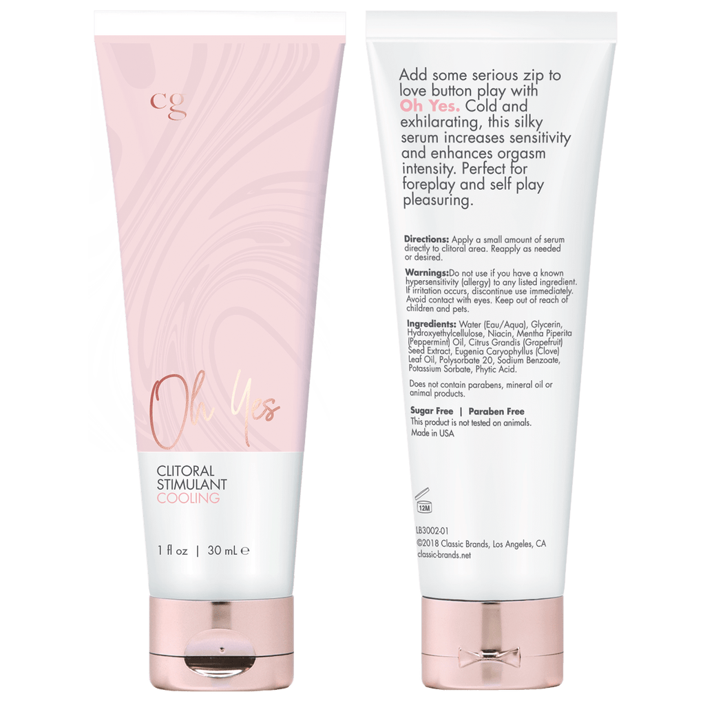 Turn up the intensity and awaken your senses with CGC Oh Yes! Clitoral Cooling Stimulant. Formulated to enhance arousal with a tantalizing cooling and tingling sensation, this water-based stimulant is pH-balanced, body-safe, and enriched with natural botanicals. A small amount goes a long way in increasing sensitivity and pleasure, making it a perfect addition to solo play or partnered intimacy. Packaged in a discreet pump bottle, it's great for travel and easy, mess-free application.