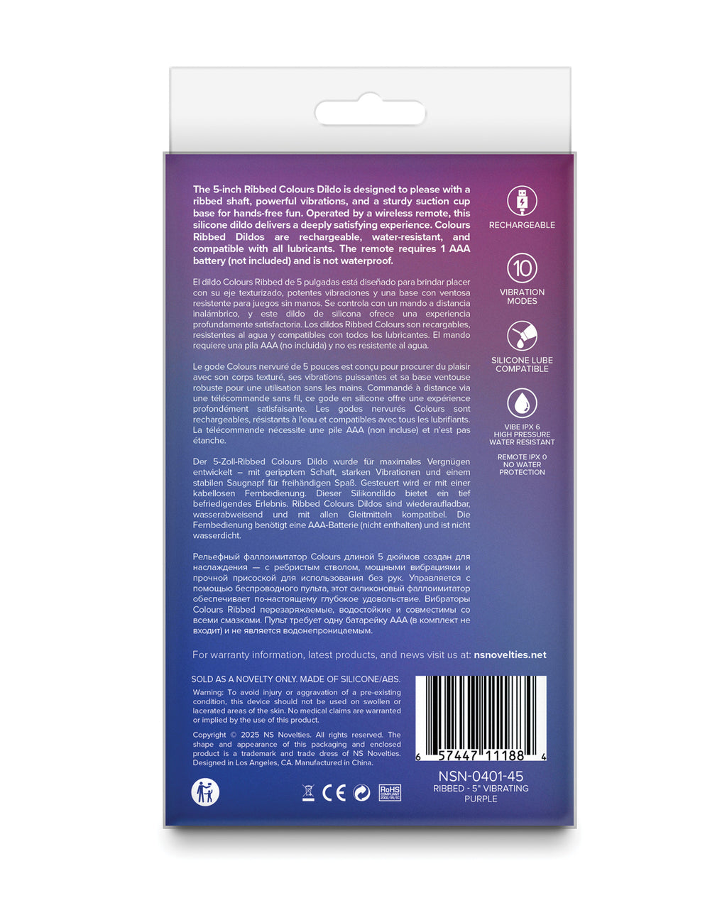 Colours - Ribbed - 5" Vibrating Dildo - Purple