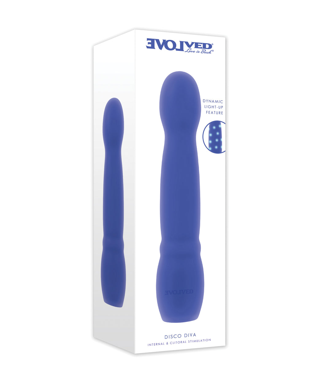 Strike a pose, hit the lights and own the night! Disco Diva delivers a visual feast for the eyes with swirling green & blue lights that dance up and down the rigid shaft, transforming with every speed and pattern. The rounded, bulbous head tapers in at the shaft while the comfortable base ends with an easy to reach 1-button control panel. The party starts when the diva arrives!