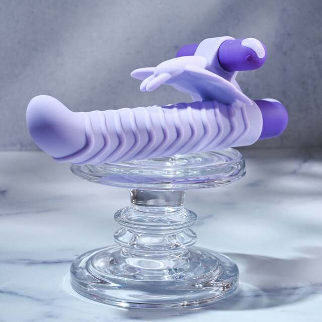 Treat yourself to a new pleasure experience every time you open your 7-piece Butterfly Kit. Choose tickling ribs with a G-spot tip, gentle vertical textures with a plump bulbous head, a quilted sleeve shaft with a back-door surprise, or a creamy smooth butt plug – each of these sexy shapes slip right over your 10-speed 7-inch plus vibe to create a unique and powerful toy every time! Don’t forget to slide the 10-speed bullet into the butterfly clitoral piece for the pièce de résistance – an extra bliss boost that puts you right over the top! The bullet also comes with its own looped sleeve, and the entire kit is completely water submersible, so you can explore in the bath or shower. Clean with Evolved Toy Cleaner and a warm water rinse.