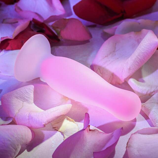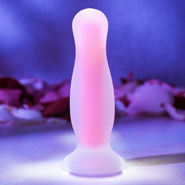 Back door fun with the lights off! Explore the unique pleasure of a super-flexible soft and squishy butt plug that glows in the dark Great for beginners, its small size and bowling pin shape are user friendly and anything but intimidating, but deliver that extraordinary sensation that creates powerful orgasms! The flared base ensures safety for anal play – and the sturdy suction cup gives you hands-free play option! Clean with Evolved Toy Cleaner and a hot water rinse.