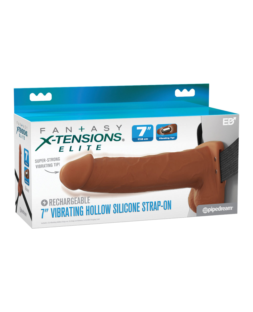Fantasy X-Tensions Elite 7" Vibrating Hollow Strap-On - Brown
