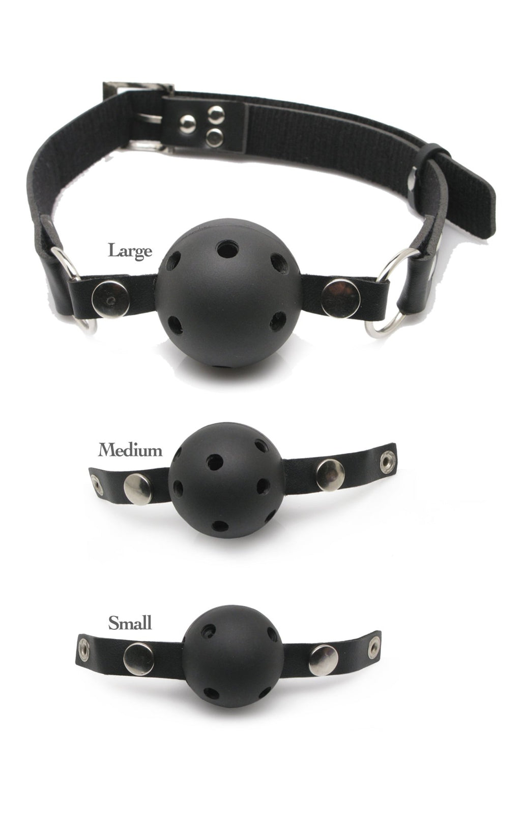 - 3 Interchangeable Breathable Ball Gags (S, M, L)