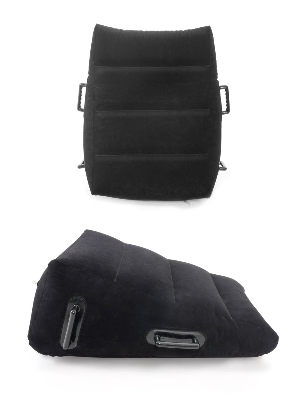 Indulge in your wildest fantasies with this Inflatable Position Master. The slanted, flocked design allows you to relax in any position without sliding off, while the EZ-Grip love handles are perfect for maintaining difficult positions without losing your rhythm. The air seal valve makes inflating the wedge a snap, and when the fun is over, simply deflate the Position Master and it's ready to go where you go. It's perfect for those romantic getaways and no one will know whats in your bag! Do it all with greater ease...no matter what position you're in! And lubricant doesn't even show up on the surface making it easy to clean, too!