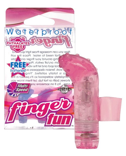 Fingers are great, because they seem to fit in all the right places. If only they vibrated . . . oh, wait, they can with a little help! Simply wrap the purple silicone sleeve of the Waterproof Finger Fun personal massager around your own digit and find a special spot. And, it's completely safe to use this vibrator in the shower or bath - take it anywhere your fingers can go!Available at FunLove.com, the largest adult toy selection at the lowest prices, with discreet shipping and billing.