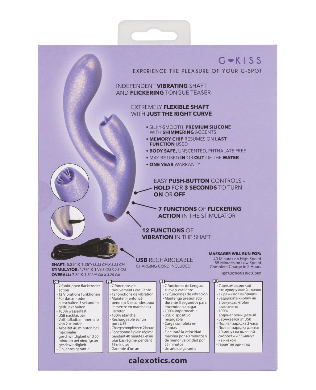 Discover dual stimulation with the G-Love G-Kiss, a contoured, waterproof G-spot massager featuring both a flickering tongue-like teaser and a vibrating shaft for sensational internal and external pleasure.