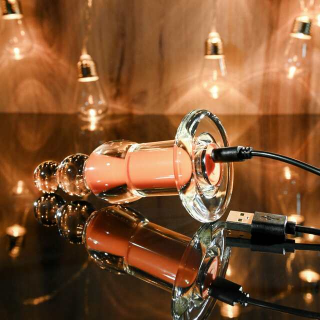 Powered by a bright orange bullet, this crystal-clear beaded shape is beautifully crafted and perfect for all kinds of vibrating play! Go hands-free with the remote control and enjoy the erotic see-through design with every movement, twist and turn. Round graduated beads slowly increase in size toward the safety base, and ten speeds and functions allow you to control your pleasure wherever you may find it, even under water as it’s completely submersible. Rechargeable, easy to clean, remote battery included.
