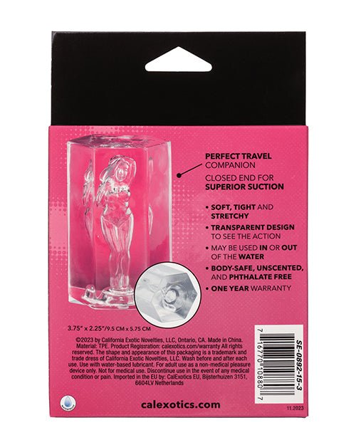 Olivia is the perfect travel companion, ready to bring a sense of adventure to any intimate moment. Its transparent design is not just aesthetically pleasing but also allows you to fully immerse yourself in the visual exhilaration of the action. The closed end of the masturbator offers superior suction, amplifying your pleasure and intensifying the experience with every stroke.
