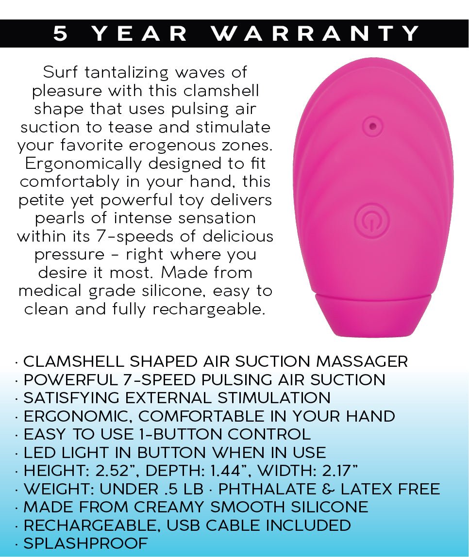 The Intrigue Pearla Sucking Clamshell is a uniquely designed clitoral stimulator that combines elegance with powerful functionality. Its clamshell-inspired design not only adds a touch of sophistication but also ensures targeted stimulation. Equipped with advanced suction technology, the Pearla delivers gentle yet effective pulsations, mimicking the sensation of oral pleasure. With multiple intensity levels, users can customize their experience to suit their preferences. Crafted from body-safe silicone, it's soft to the touch and easy to clean. The device is USB rechargeable, ensuring it's always ready for use.