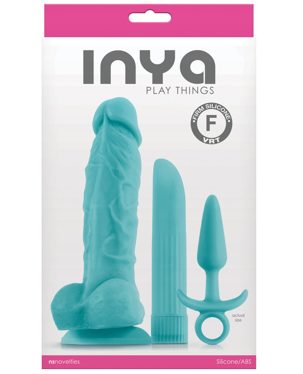 Playtime is always better with INYA Play Things – a provocative and vibrant collection of high-end pleasure products! This must-have kit includes realistically molded 5-inch silicone dildo with strong suction cup base, powerful 5-inch ABS vibrator, and stylish, slim-tapered 3-inch silicone pleasure plug. Let the games begin!