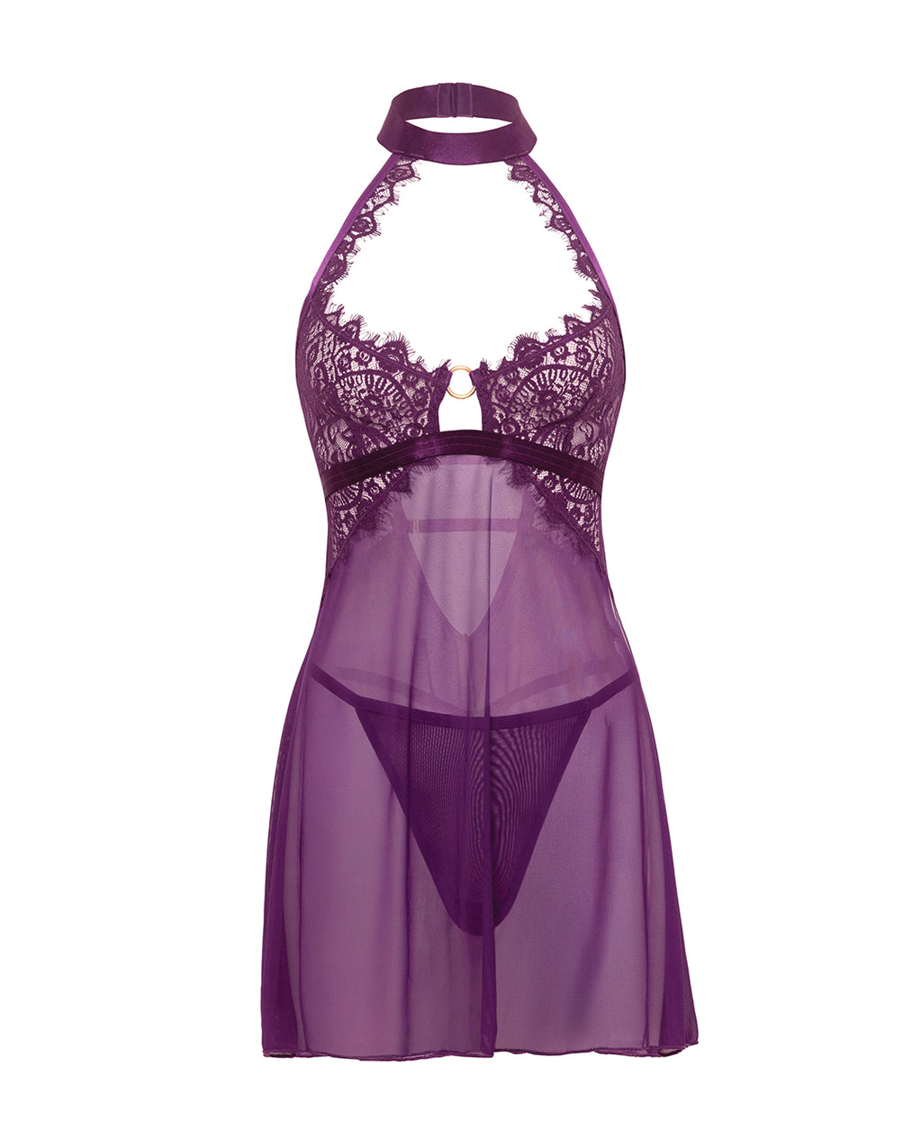 The Kennedy Sheer Lace Babydoll blends softness and seduction in one elegant silhouette. Featuring delicate lace cups and a high halter neckline, it highlights your décolletage while sheer mesh drapes effortlessly over the body. The airy skirt floats with every move, and the matching G-string adds just the right amount of intrigue. Whether you're dressing up for someone special or embracing your own sensuality, this babydoll chemise is all about graceful confidence.