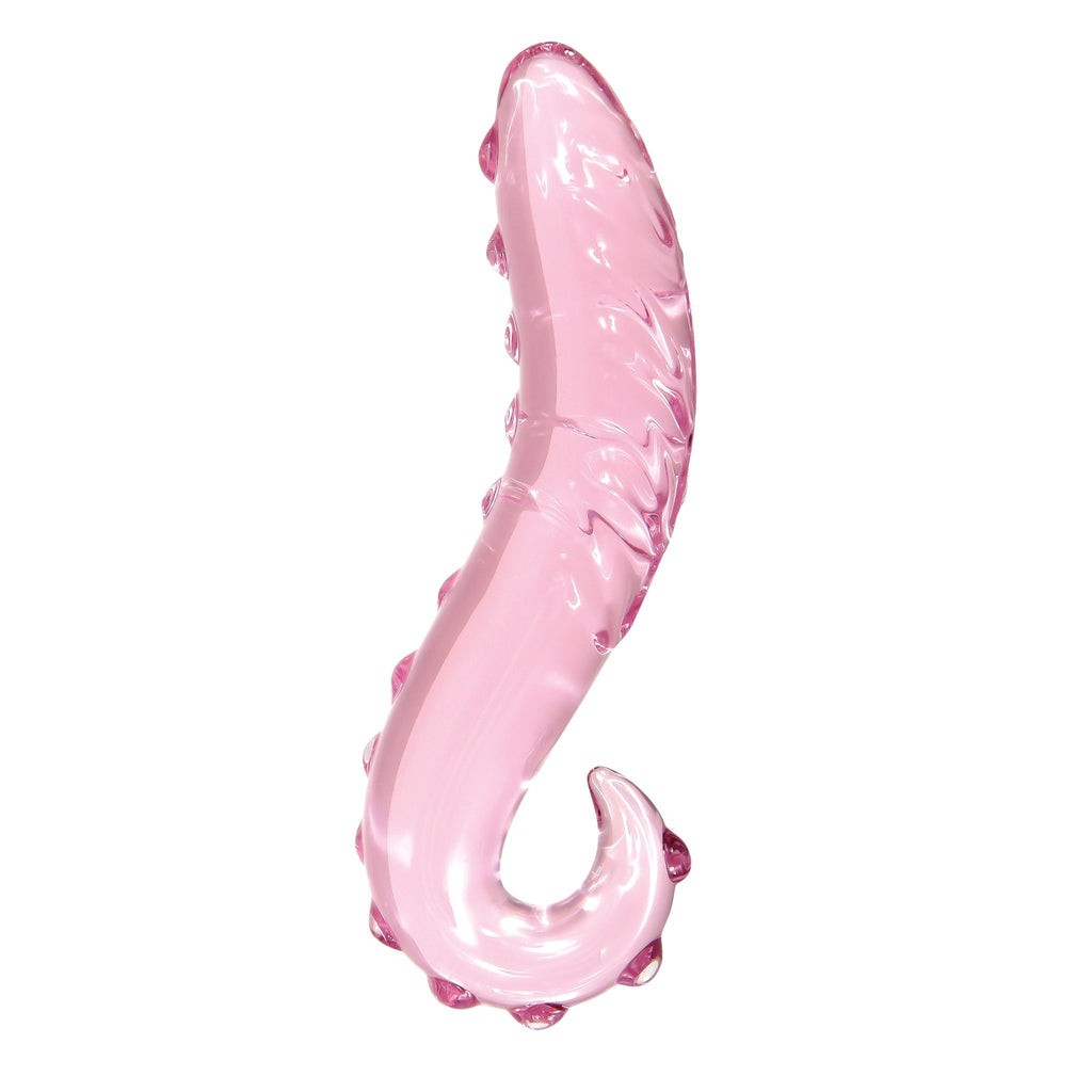 This hand-crafted glass toy is a work of art with its elegantly curved shaft that features pleasure nubs down one side and a drizzle pattern texture on the other.