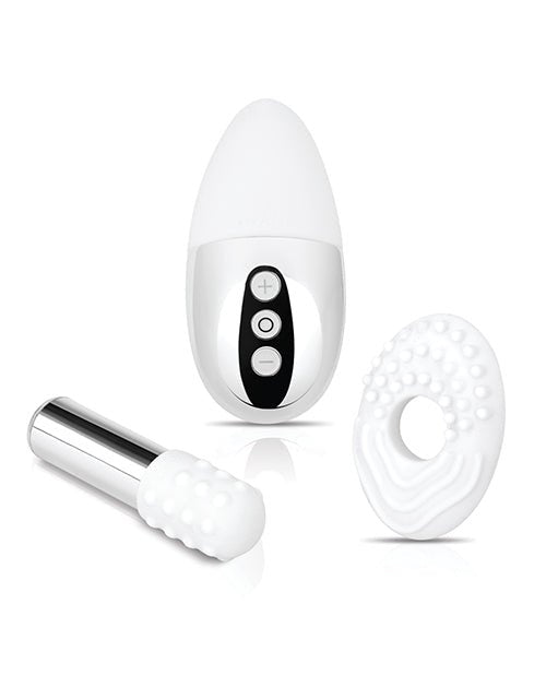 Spark joy daily with Le Wand's Little Pleasures Set that includes two of our coveted Chrome mini-vibes for instant sensual satisfaction. Featuring Le Wand Bullet and Point rechargeable vibes in a lustrous Special Edition Silver Chrome finish, each powerful palm-sized vibe delivers its own unique stimulation.