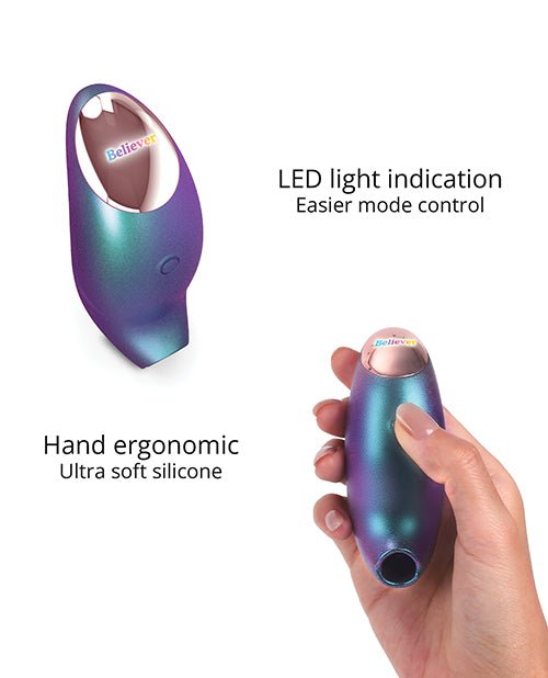Love to Love Believer is the perfect hand ergonomic silicone stimulator. Travel size. External Clitoral Stimulation from flapping movements. 5 flapping modes. USB Magnetic rechargeable. Charge Time - 75 minutes. Run Time - 85 minutes. Waterproof IPX7.