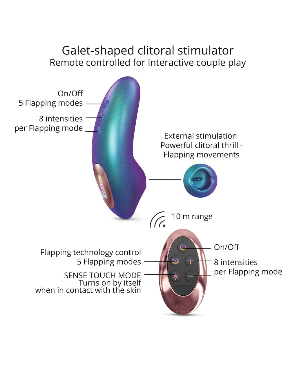 And we saved the best for last...! Thanks to its âMagic Touchâ AKA âSense touch technologyâ, no need to press the buttons on your toy or the remote control, simple contact with your skin is enough to turn the Dreamer on. Move it away from your body and it stops. Magical, right? Told you.