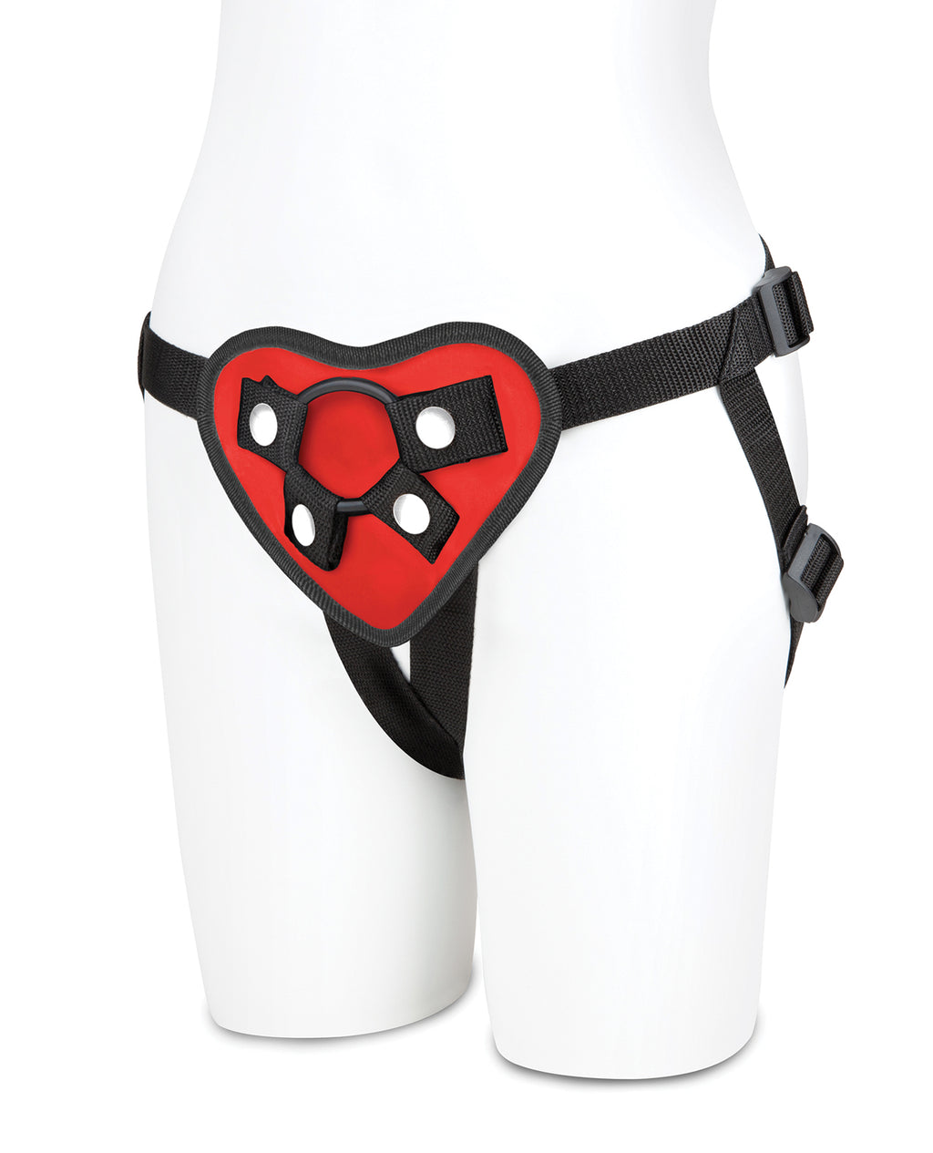 Show your love with this fully-adjustable heart-shaped strap-on harness from Lux Fetish. This durable strap-on can accommodate any dildo with a flared base, and includes 2 rubber holder rings. Perfect for new initiates just discovering the joys of deep penetration, or for experts looking to add another tool to their arsenal. 4 way adjustable straps fit hips up to 60"'.
