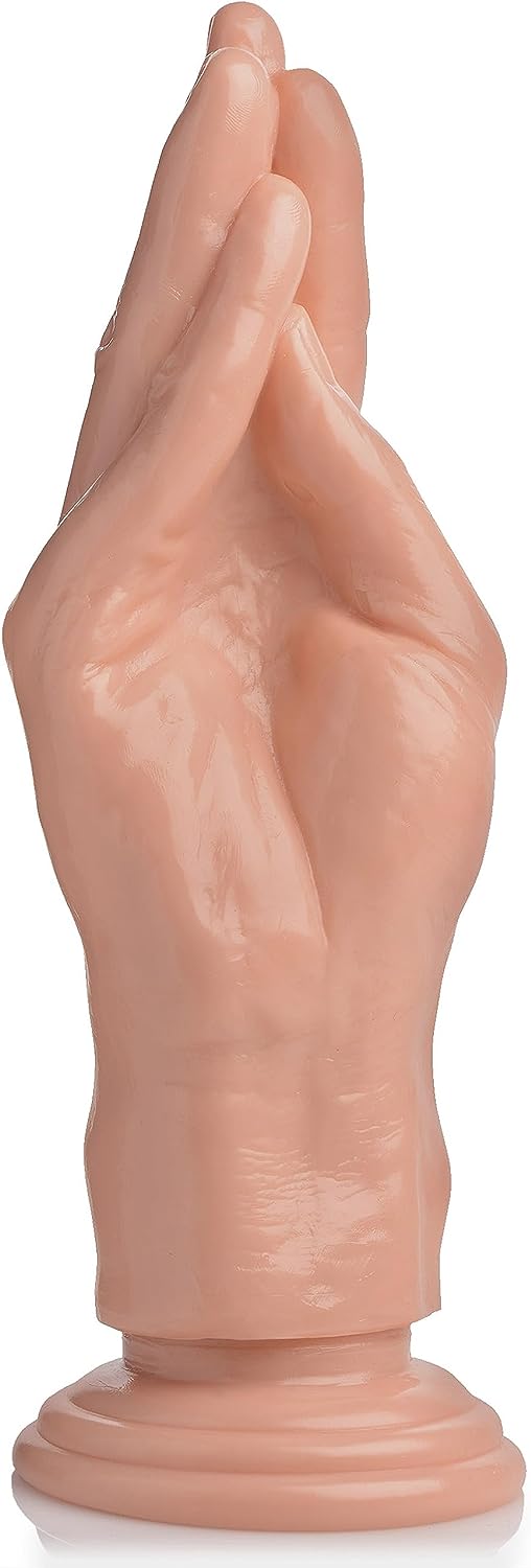 Five fingers of fun! The Stuffer presents you with the next penetrative challenge, allowing you to fist yourself, vaginally or anally. This life-size replica of a human hand features realistic details that will stretch you open and massage your hole. For your intro to fisting, this unique dildo is tapered at the tip with fingers that are grouped together for easy insertion. The flared base allows you to impale yourself entirely and ensures easy retrieval. The powerful suction cup can be mounted so that you can ride The Stuffer... hands-free! Made of a phthalate-free material, it is body-safe and compatible with silicone and water-based lubricants. Clean with a mild soap or toy cleaner after use. Measurement: 8.5 inches in total length, 7.5 inches insertable, 2.9 inches at widest diameter. Material: PVC.