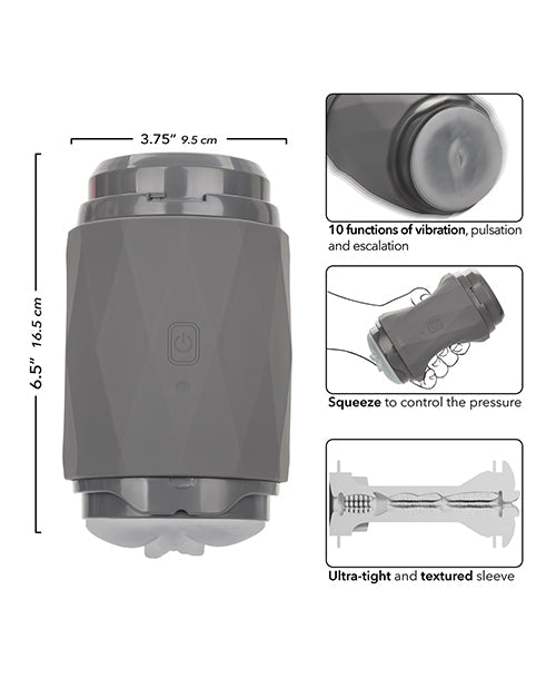 Dive into a diverse playground of sensations with 10 distinct functions of vibration, pulsation, and escalation. The stroker elevates your experience with an ultra-tight, textured sleeve that’s designed for intense stimulation. Featuring a dual-ended design, this stroker invites you to explore both front and back door action, leaving no desire unfulfilled. The EZ grip ensures a firm hold, enhancing your control and adding an extra layer of intensity to your pleasure. It also comes with removable caps at both ends, providing safe and clean storage when not in use.
