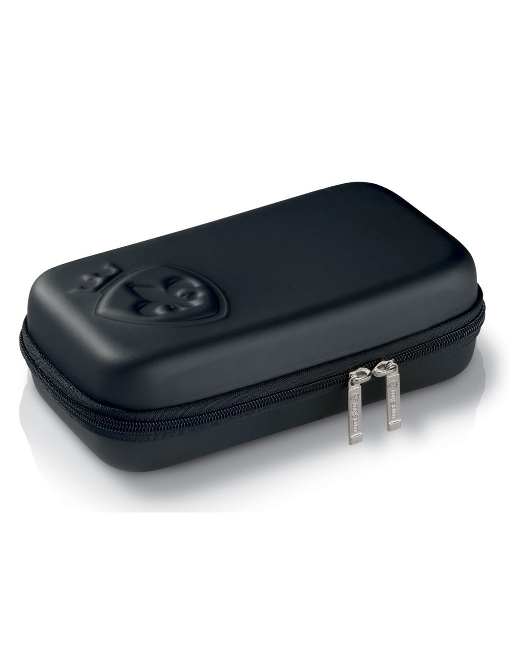 The Pubic Enemy No 2 is our neat and transparent cock cage with e-stim function: He lets you keep a boisterous willy pent up under lock and key so that he can't get stiff until the mistress, or the master, comes with the key and lets him out. With the urethral sound and its 3 conducting surfaces, left, right and under the penis shaft the prisoner can be treated to your heart's content with tingles, twitches or pulsations in precisely the intensity he deserves. In order to make him fit for any men's best asset, the length of our Pubic Enemy No 2 can be individually adjusted in 4 lengths and the diameter in 6 different steps. Because his urethral sound and conductive surfaces can be taken out in no time at all, our chastity belt for wayward gentlemen is perfect even for those who haven't yet discovered e-stim. And if a prisoner gets too cocky later, the conductivity can easily be restored. A metal lock with engraved mystim shield and a set of 5 plastic seals ensure there is no escape from the Pubic Enemy. For forgetful subs there are enough name plates with the line "hands off - this prisoner belongs to...", which fit into the holder of the cage. Just as a little reminder who owns the cage's content.