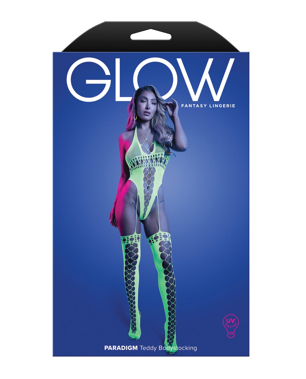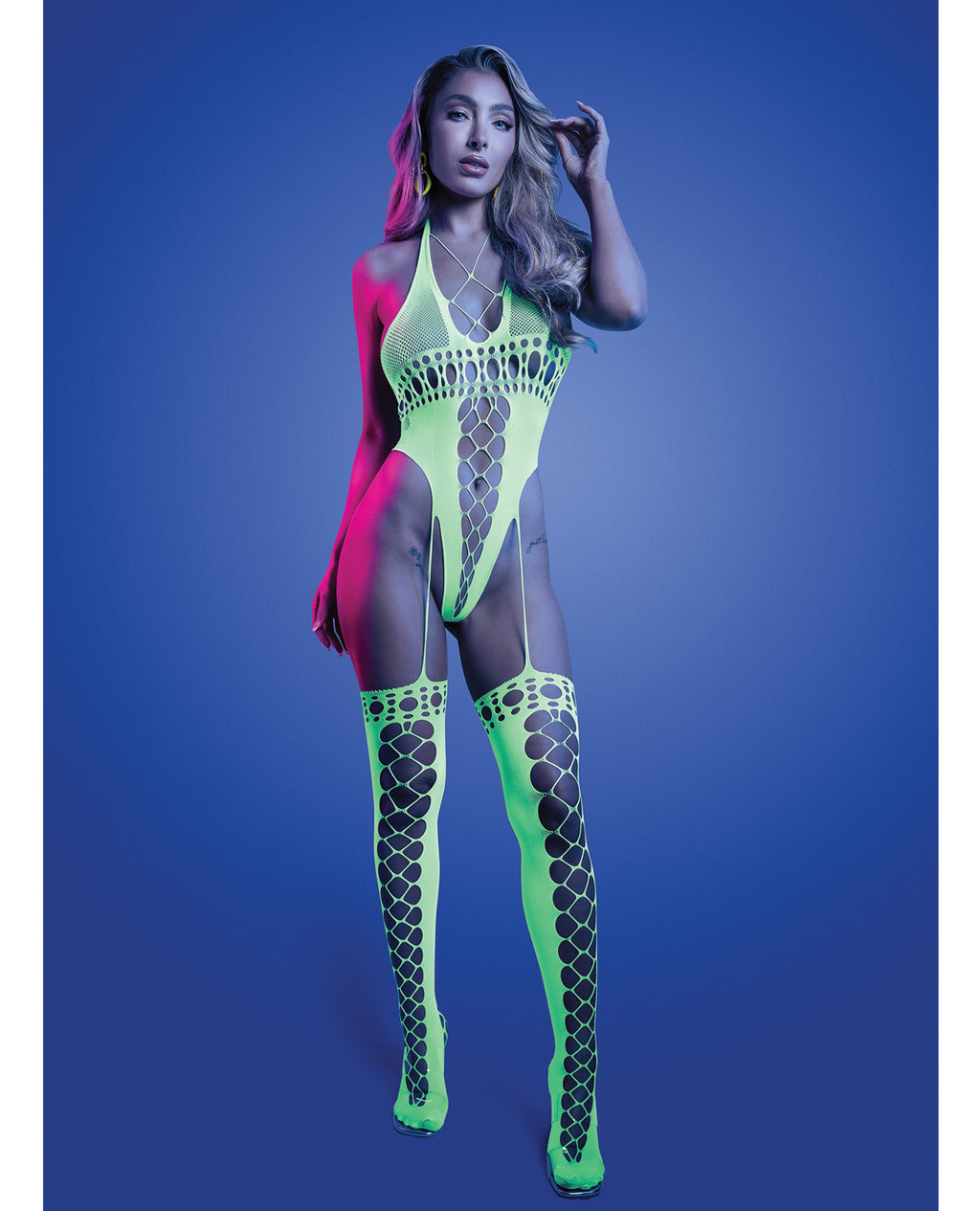 Paradigm UV Reactive Halter Teddy Bodystocking - Neon Green O/S