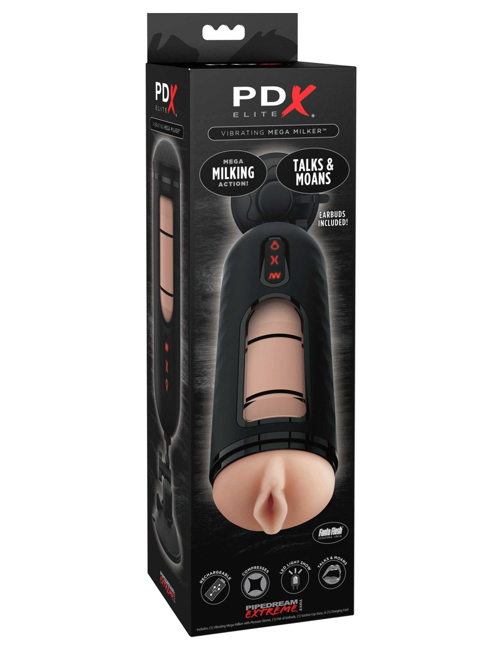 The PDX Elite Vibrating Mega Milker Stroker offers an immersive, hands-free experience with its automatic stroking and vibration functions. Designed to mimic the sensations of oral and manual stimulation, this device features multiple speeds and patterns to cater to your preferences. Its USB-rechargeable battery ensures convenience, while the ergonomic design allows for comfortable use.
