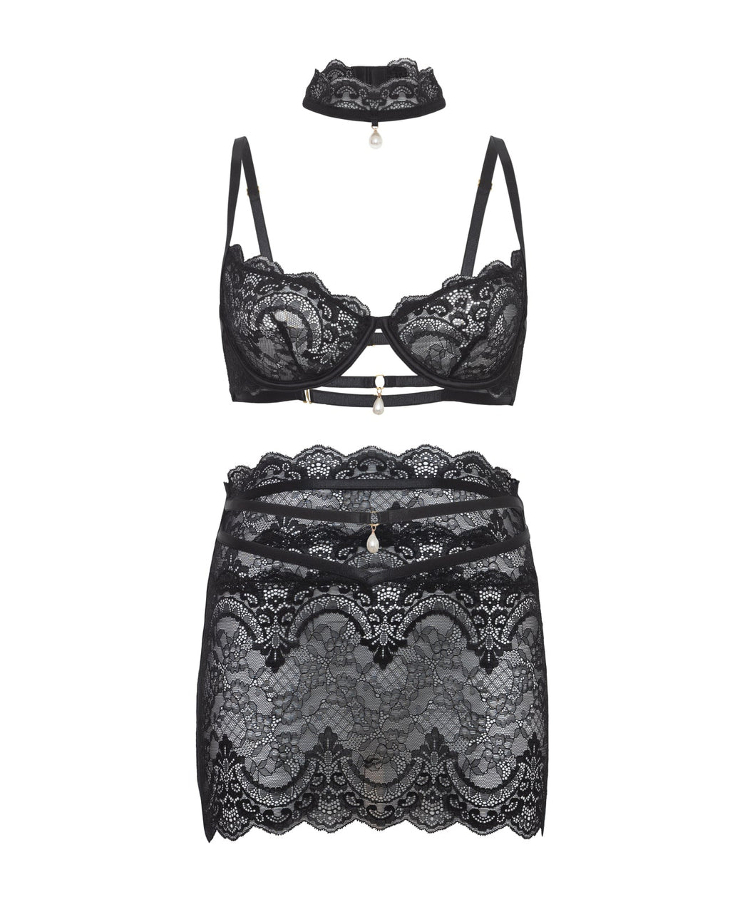Perla Lace 3 pc Set w/Pearl Details - Black
