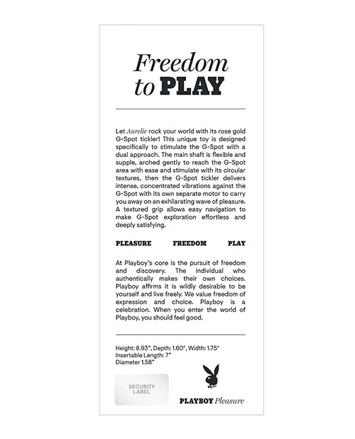 Let Aurelie rock your world with its rose gold G-Spot tickler! This unique toy is designed specifically to stimulate the G-Spot with a dual approach. The main shaft is flexible and supple, arched gently to reach the G-Spot area with ease and stimulate with its circular textures, then the G-Spot tickler delivers intense, concentrated vibrations against the G-Spot with its own separate motor to carry you away on an exhilarating wave of pleasure. A textured grip allows easy navigation to make G-Spot exploration effortless and deeply satisfying.