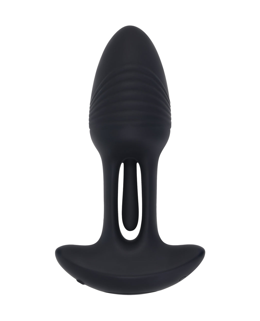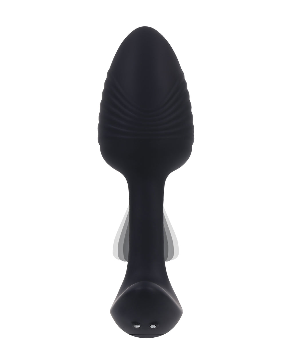Cue the Rim Shot! You’re sure to find the fun with this vibrating plug that has one very special secret. Inside the plug’s shaft is a flicking flapper that swings from side to side to tickle and tease in up to 10 speeds and rhythms! The chunky plug itself is tapered to a rounded tip for easy entry and textured with ridges for added sensation. The flapper hangs below the plug to work its pleasurable magic before the wide safety base acts as a sexy stopper, finishing out the full experience. Discover the extraordinary feeling of a flicking plug – even under water as it’s completely submersible – not to mention long distance hands-free with the 100’ range remote!