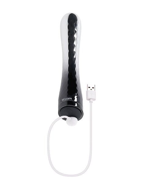 Stylish and textured for an easy grip, this chic chrome shape delivers powerful vibrations in a long, slender shaft that finishes with a smooth, bulbous tip.