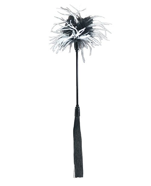 Sex and Mischief Whip & Tickle in pink & white: Perfect combination of soft & sexy. This product features a card with sexy games and tips. Great lingerie accessory! This 16-inch black wand features fluffy marabou on one end and a sturdy rubber whip on the other. The perfect combination of soft and sexy with black and white detailing with a bonus tips & tricks card included! Perfect accessory to your favorite lingerie ensemble!Available at FunLove.com, the largest adult toy selection at the lowest prices, with discreet shipping and billing.
