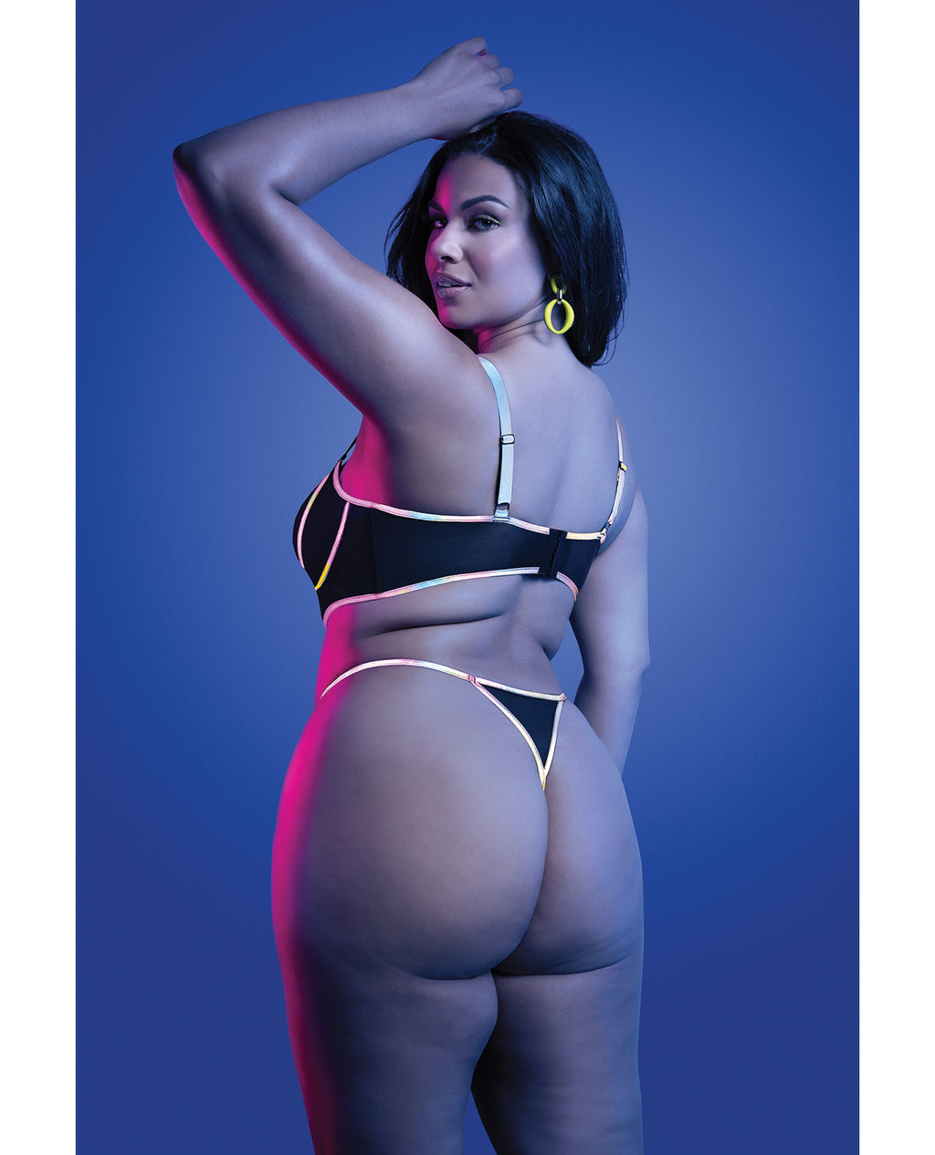 Solar Flare Flash Reflective Binding Underwire Bra & Thong - Black QN